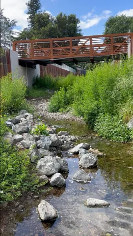 In January 2023, Valley Water completed constructing the Hale Creek Enhancement Pilot Project, which extends from upstream of Marilyn Drive in Mountain View to Sunshine Drive in Los Altos. Construction began in June 2022, with in-channel work construction completed in November 2022. The project’s purpose is to restore geomorphic and riparian habitat functions while improving flood protection along a 650-foot-long reach of Hale Creek. The project entailed widening and deepening the creek and restoring natural geomorphic and riparian functions by installing a soft-bottom channel planted with vegetation.